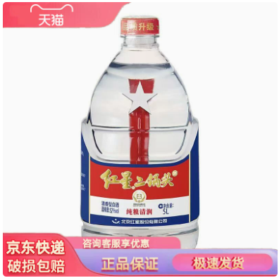 红星二锅头 52度大桶5L*1桶/4桶高度泡酒清香型纯粮白酒口粮酒