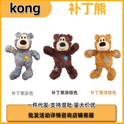 KONG狗狗发声玩具磨牙绳结毛绒补丁熊柯基小型犬宠物安抚解闷神器