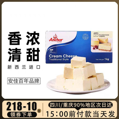 安佳奶油奶酪1kg干酪乳酪芝士块巴斯克蛋糕烘焙专用家用材料
