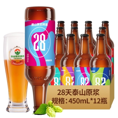 泰山原浆啤酒9度28天瓶装整箱啤酒450mL*12瓶泰山啤酒