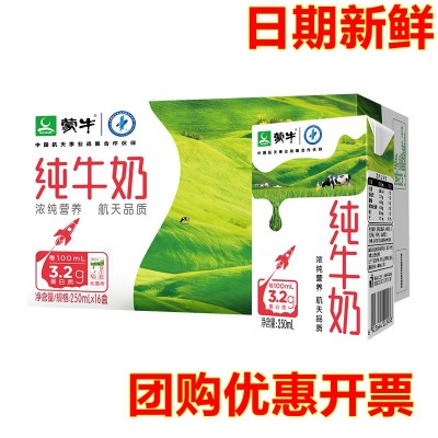 蒙牛纯牛奶250ml*16盒整箱营养健康早餐奶纯奶航天品质香浓醇厚味