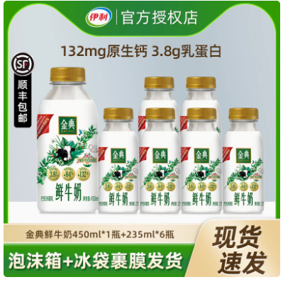 伊利金典鲜牛奶235ml*6瓶+450ml*1瓶装巴氏杀菌新鲜佐餐低温鲜奶