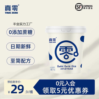 真零原味酸奶糖大桶装1kg风味发酵乳低温纯酸奶营养酸奶碗包装