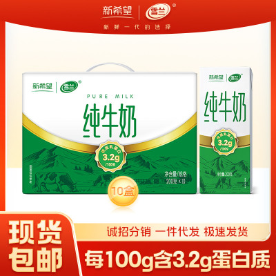 新希望雪兰3.2g蛋白苗条砖全脂纯牛奶200g*10盒*1 批发