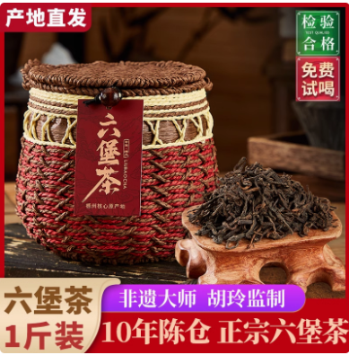 正品广西梧州六堡茶金花槟榔香特级黑茶十年陈老茶官方店500g