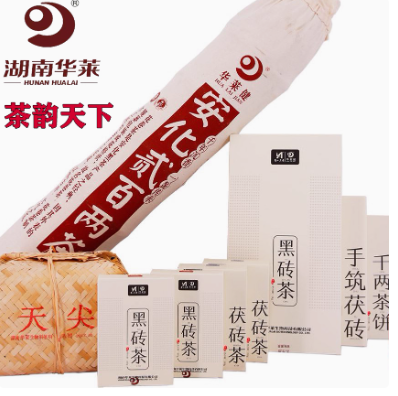 华莱健套装一湖南安化黑茶金花茶和天下正品金茯百两天尖黑砖荷香