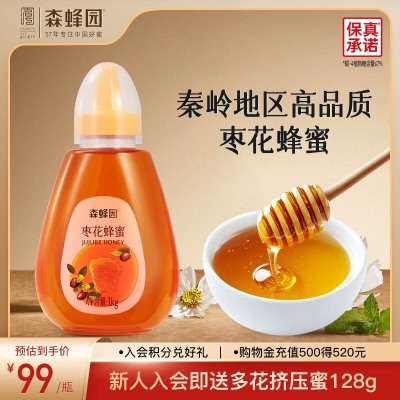 森蜂园枣花蜂蜜 秦岭森林枣花花蜜 家用蜂蜜冲饮大瓶挤压瓶1000g