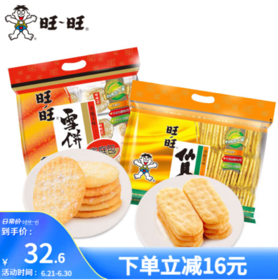 旺旺 雪饼400g + 仙贝 400g 办公零食小吃膨化休闲食品酥脆米果点心饼干袋装