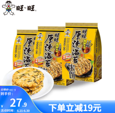 旺旺 厚烧海苔米饼零食大礼包台湾锅巴饼干膨化食品散装组合168gx3包