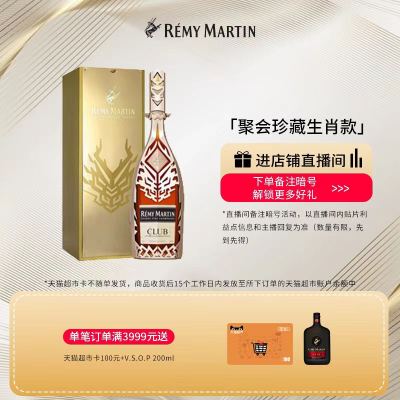 【品牌旗舰】法国人头马CLUB优质香槟区干邑6L龙年限量正品洋酒