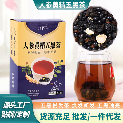 五黑茶人参黄精桑椹茶包悦发组合花茶工厂家乌肾黑枸杞桑葚五黑茶