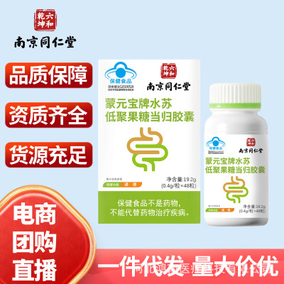 南京同仁堂蒙元宝牌水苏低聚果糖当归胶囊蓝帽通便48粒 批发代发
