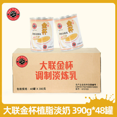 香港进口大联金杯植脂淡奶390g*48罐整箱港式奶茶咖啡调制淡炼乳
