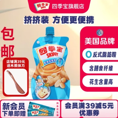 四季宝花生酱早餐面包火锅凉拌蘸料拌面酱挤压装柔滑花生酱290g 挤压装290g*1袋