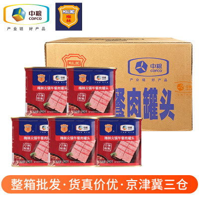 梅林火锅午餐肉罐头340gx24罐整箱商用批发商超超市麻辣烫肉罐头