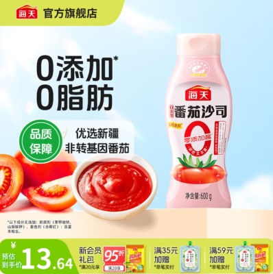 海天番茄酱 0添加番茄沙司 0脂肪新疆番茄蔬菜沙拉调料调味品 【0防腐】0添加番茄沙司600g*1