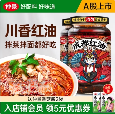 仲景 成都红油拌菜料 钵钵鸡红油泼辣子香辣椒油凉拌菜调味料饺子蘸料 红油220gx2瓶