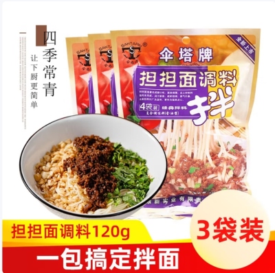 伞塔牌拌面酱面条调料包120g*3袋家用方便料理包炸酱面重庆小面 担担面120g*3袋(共12小包