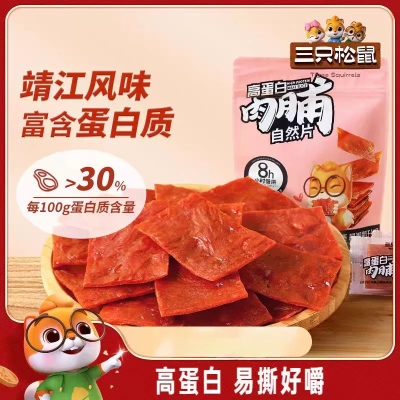三只松鼠高蛋白肉脯自然片100g靖江小吃零食鸡肉猪肉脯休闲食品