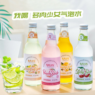 夏季汽水玻璃瓶饮料果汁多种口味橙子味荔枝味桃子味双柚味4瓶装