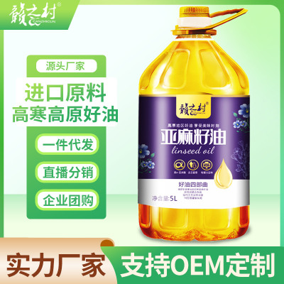 厂家直营 源纯亚麻籽油5升冷榨胡麻油5L食用植物油大桶家用装批发