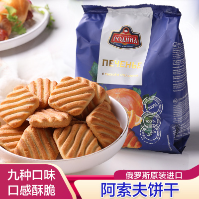 俄罗斯进口酥性饼干即食早餐曲奇可可牛奶味解馋休闲小吃零食210g