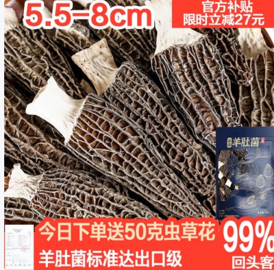 相遇红颜云南羊肚菌野生菌精选去柄头茬南北干货菌菇山珍滋补炖鸡煲汤食材 5.5-8cm头茬羊肚菌100g