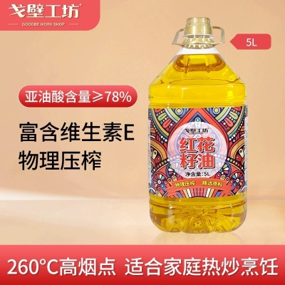 新疆红花籽油5L桶装家用热炒油一级压榨植物油5升食用油批发团购