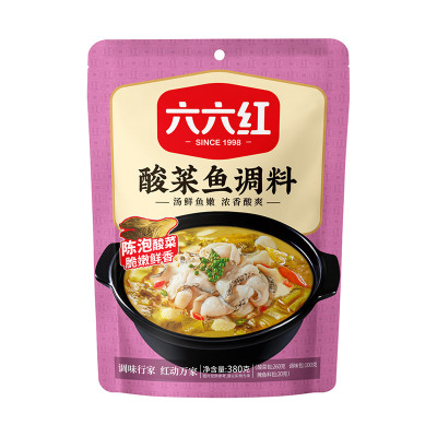 六六红厂家批发家用商用酸菜鱼调料包380g金汤酸菜鱼调料酱料底料
