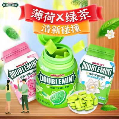 绿箭无糖口香糖40粒瓶装绿茶原味薄荷味口气清新休闲糖果零食便携