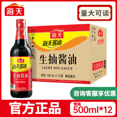 海天酱油生抽500ml/瓶酿制酱油凉菜炒菜火锅蘸食调味品家庭装批发