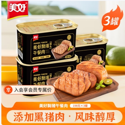 美好黝猪午餐肉罐头黑猪肉泡面三明治搭档198g*3