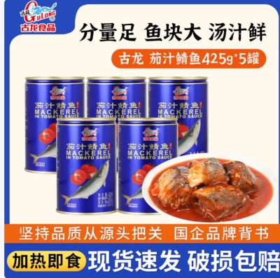 古龙厦门风味鱼罐头茄汁鲭鱼425g下饭下酒菜应急囤粮食材方便即食熟食 425g*5罐