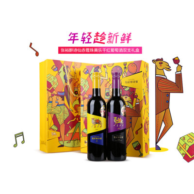张裕红酒醉诗仙双支礼盒装赤霞珠美乐干红葡萄酒750ml*2瓶装正品