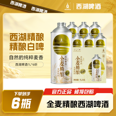 西湖啤酒全麦精酿1000ml*6罐装整箱麦汁浓度9.8度雪花啤酒