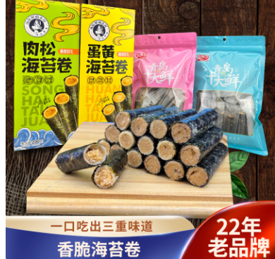 海姑娘的小屋海苔卷青岛风味肉松味蛋黄味海苔蛋卷夹心特产伴手礼