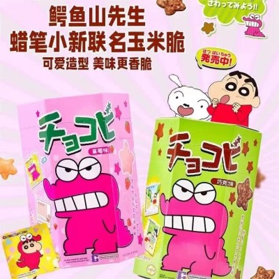 泰国进口蜡笔小新饼干同款联名粟米星巧克力味草莓味玉米脆鳄鱼山