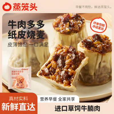蒸笼头黑椒牛肉烧麦纸皮方便速冻食品早餐半成品上海烧卖加热早饭