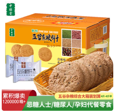中膳堂粗粮饼干无糖精五谷杂粮全麦高纤代餐早友糖尿人孕妇主食品