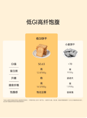 低GI全麦饼干粗粮卡脂肪代餐饱腹无添蔗糖压缩解馋孕妇零食品热量