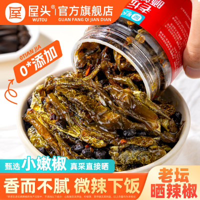 屋头老坛晒辣椒湖南特产香辣虎皮豆豉晒辣椒农家辣椒酱开味下饭菜