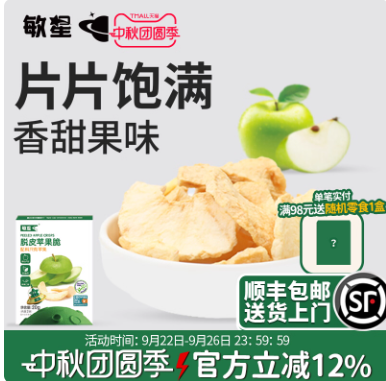 敏星脱皮苹果脆片非油炸儿童休闲小零食不加砂糖送敏宝宝婴儿食谱