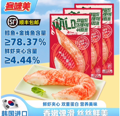 韩国客唻美巨无霸鲜虾鳕鱼棒模拟蟹肉蟹棒即食低脂蟹柳棒海味零食