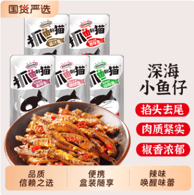 抓鱼的猫小鱼仔小鱼干麻辣毛毛鱼香辣深海即食零食12g装糖醋辣鱼