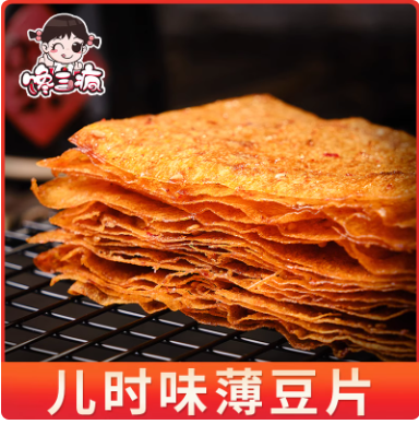 馋三疯儿时薄豆片平江老式大辣片香辣豆片手撕豆腐皮辣条小吃零食