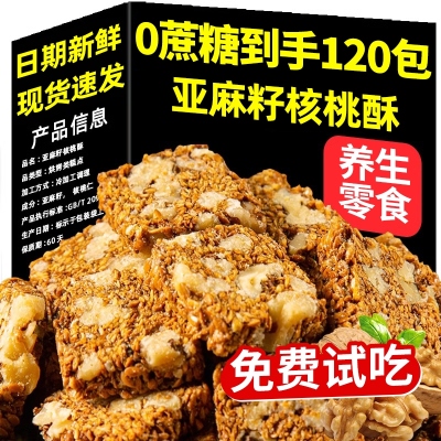 亚麻籽核桃酥官方旗舰店无蔗糖坚果休闲零食特产酥脆解馋糕点