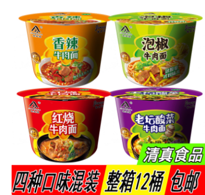 清真桶面泡面整箱12桶装方便面混装4口味火锅面红烧牛肉面