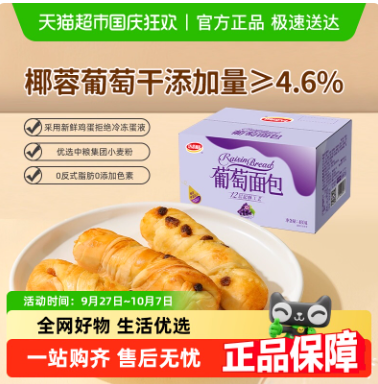 美焙辰西式糕点短保椰蓉葡萄起酥面包盒装休闲零食早餐手撕包点心