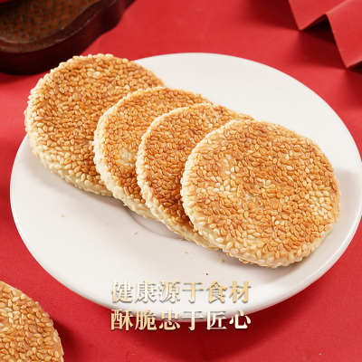 黄石芝麻港饼麻香脆饼酥饼传统美食中华老字号300g薄脆馅饼零食