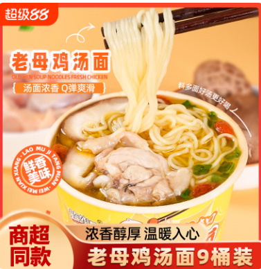 【9桶】童年街口老母鸡汤面桶装方便面醇香浓郁鸡汤面泡面整箱装